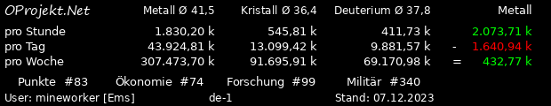 Durch deine Minenproduktion kannst Du im Schnitt maximal 468.340 Punkte pro Woche bekommen.