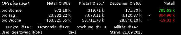 Durch deine Minenproduktion kannst Du im Schnitt maximal 257.437 Punkte pro Woche bekommen.